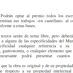 Podrán optar al premio todos los escritores de cualquier nacionalidad, que remitan sus trabajos al concurso, dentro del plazo señalado (hasta el 28 de febrero) y conforme a las bases.