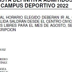 Se ha publicado la lista rectificada de los admitidos al campus deportivo 2022.